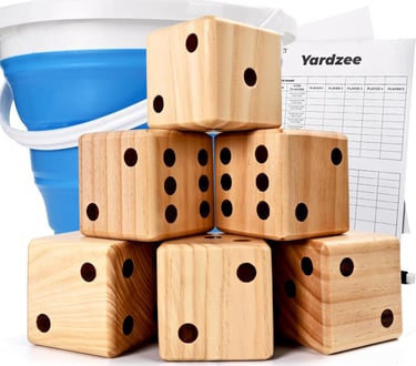Kids and adults all enjoy this fun set of giant wooden dice for outdoor entertainment. It can be used both indoors and outdoors at BBQs, beach, backyard games, and much more.