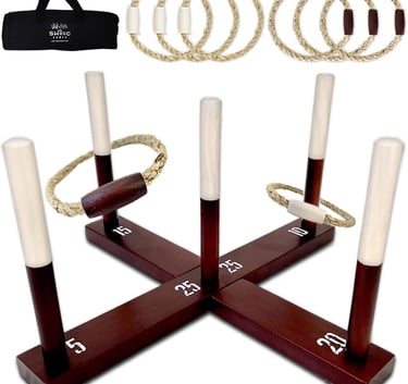 15+ GAMES INCLUDED - Choose from Classic Ring Toss or play exclusive SWOOC originals like Last Man Standing and Golf. Designed for all ages and skill levels. Never get bored with T-O-S-S (similar to H-O-R-S-E), Horseshoes, Trap Zone, and more!
